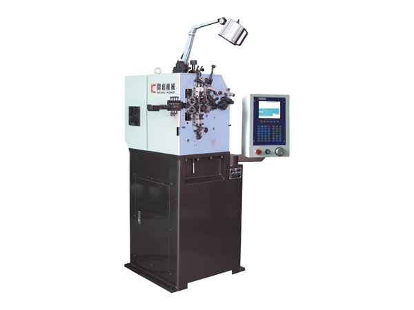 Our company's KCT-8C 2 Axis High-speed spring coiling machine adopts the Taiwan computer control system, uses the Japanese industrial servo motor and the high precision bearing and so on, and has the left, right direction turret and torsion spring device (another need to match). The models ( 08-type compression spring machine ) standard for two axis, free spool and camshaft, independent or synchronous operation, has high forming speed, stable performance and high accuracy. In addition, the KCT-8C computer compression spring machine's computer system has memory storage function, memory program can reach 1000, simple editing interface, to achieve the rapid input and output of the program, debugging more convenient.